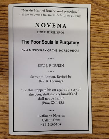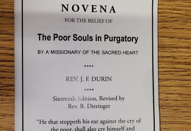 Call or text for a free novena booklets to pray for Poor Souls in Purgatory.